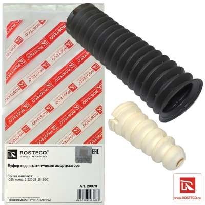 Буфер хода сжатия ROSTECO изготовлен из Пено-полиуретана, что обеспечивает высокую степень устойчивости автомобиля на крутых поворотах, и защищает надёжно подвеску от пробоев. Изделие устойчиво к абразивному износу, также обладает устойчивостью и воздействию органических растворителей, озону, ультрафиолетовым лучам. Рабочая температура изделия -60°С .. +100°С.