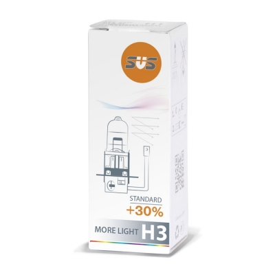 Серия галогенных ламп STANDARD +30% обладает улучшенными эксплуатационными характеристиками, мощной светоотдачей и увеличенным сроком службы. Лампы данной серии устанавливаются в фары головного света. Они обеспечивают хорошую видимость дороги как при движении в темное время суток, так и в сложных погодных условиях. Вырабатываемое свечение является комфортным для зрительного восприятия.