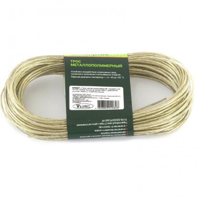 Трос металлополимерный представляет собой латунированный металлотрос покрытый пластикатом ПВХ методом экструзии.