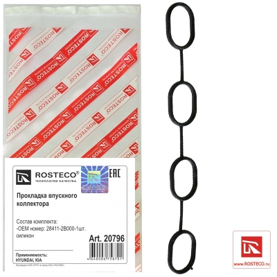 Прокладка впускного коллектора ROSTECO производится из силиконового компаунда ведущих мировых лидеров в отрасли компании, таких как WACKER, Momentive. Это обеспечивает превосходные характеристики, такие как исключительная герметичность узлов, повышенная устойчивость к агрессивной среде (нефтепродукты, щелочная среда), низкая адгезия, широкий диапазон рабочей температуры (-60°C .. +220°C).