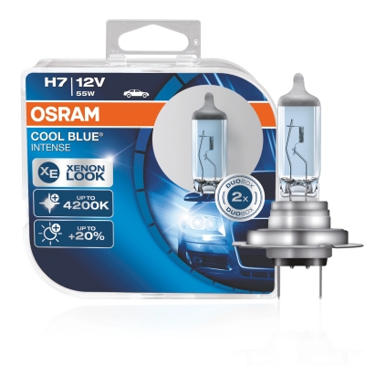 COOL BLUE INTENSE – высокотехнологичные галогенные лампы с цветовой температурой до 5000 Кельвинов. Их яркий белый холодный свет создает эффект светодиодного освещения – находка для ценителей дизайна и тюнинга автомобиля. Эти лампы обеспечивают высокую контрастность освещения с комфортным для глаз спектром, приближенным к естественному дневному. Яркость OSRAM COOL BLUE INTENSIVE на 100% больше по сравнению с минимальными требованиями стандарта ECE.