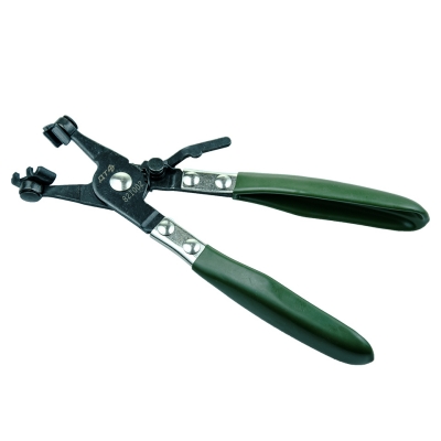 Клещи для самозажимных хомутов обладает трещоточным механизмом, который позволяет фиксировать хомут в разжатом состоянии. Инструмент изготовлен из стали марки 50. Инструмент предназначен для обслуживания многоразовых самозажимных хомутов топливных, а также масляных и водяных шлангов.