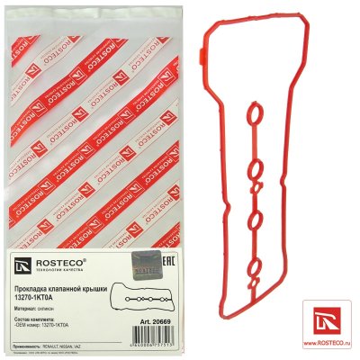 Прокладка клапанной крышки ROSTECO производится из силиконового компаунда ведущих мировых лидеров в отрасли компании, таких как WACKER, Momentive. Это обеспечивает превосходные характеристики, такие как исключительная герметичность узлов, повышенная устойчивость к агрессивной среде (нефтепродукты, щелочная среда), низкая адгезия, широкий диапазон рабочей температуры (-60°C .. +220°C).