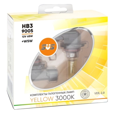 Комплект галогенных ламп HB3 12V 65W 3000K+W5W Yellow
