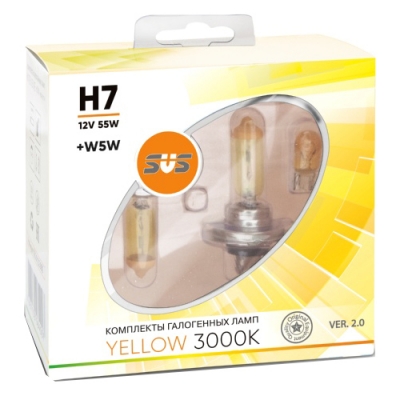 Комплект галогенных ламп H7 12V 55W 3000K+W5W Yellow