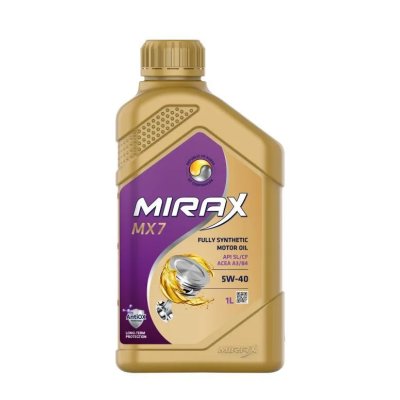 Масло моторное синтетическое универсальное MIRAX MX7 SAE 5W-40, API SL/CF, ACEA A3/B4 - предназначено для смазывания бензиновых и дизельных двигателей современных легковых и легких грузовых автомобилей.