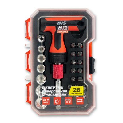 Отвертка реверсивная с насадками (26 предметов) AVS ORS26