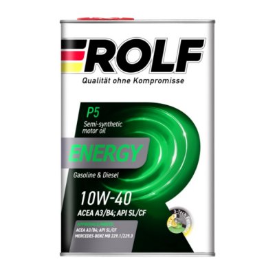 Масло моторное полусинтетическое Rolf Energy SAE 10W-40 ACEA A3/B4 API SL/CF производится из качественных базовых масел с использованием синтетических технологий и современного сбалансированного комплекса присадок. Благодаря технологии 3-Tech Formula, которая заключается в особой комбинации модификаторов трения, антикоррозионных присадок и комплекса деактиваторов ионов металлов, масло обеспечивает надежную защиту двигателя от износа, предотвращает образование шлама, обладает высокой устойчивостью к окислению и низкой испаряемостью, формирует стабильную смазывающую пленку при холодном запуске, а также при высоких рабочих температурах.