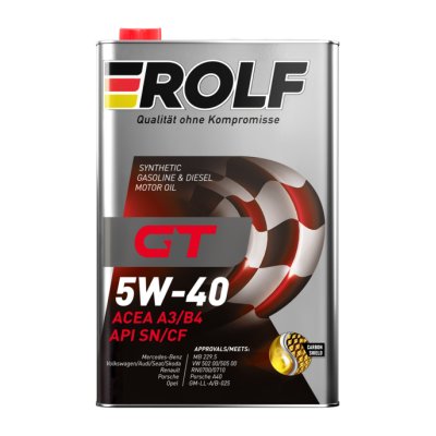 Высокотехнологичное синтетическое моторное масло Rolf GT SAE 5W-40 ACEA A3/B4 API SN/CF с технологией Carbon Shield содержит уникальный комплекс детергентов, повышающий способность масла предотвращать образование отложений, обладает повышенной стойкостью к окислению при использовании топлива переменного качества (с содержанием серы до 500 ppm), тем самым обеспечивая превосходную защиту двигателя от износа и увеличение интервалов замены масла, обеспечивает быстрый и легкий запуск двигателя при низких температурах.