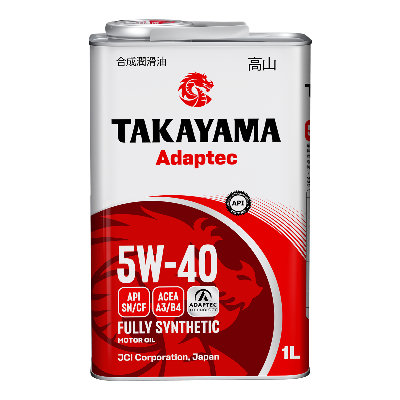 Синтетическое всесезонное моторное масло TAKAYAMA Adaptec SAE 5W-40 API SN/CF АCEA A3/B4 разработано для применения в бензиновых и дизельных двигателях легковых автомобилей, микроавтобусов, внедорожников и лёгких грузовиков, в том числе оборудованных турбонаддувом. Производится из высококачественных базовых масел и многофункционального пакета присадок с использованием технологии Adaptec, которая обеспечивает минимальный коэффициент трения и превосходную защиту двигателя от износа при его работе в режимах высоких температур и высоких нагрузок.