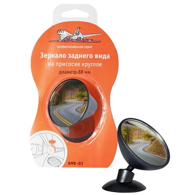 Зеркало салонное на присоске используется, как дополнительное зеркало для наблюдения за пассажирами и детьми на ззаднем сиденье или как дополнительное зеркало для обзора пространства за пределами автомобиля. Зеркало имеет круглую форму и черный корпус из прочного пластика. Диаметр зеркала составляет 88 мм. Крепится с помощью круглой присоски.