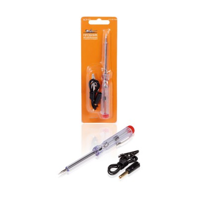 Универсальный пробник - индикатор, может использоваться как основной инструмент автоэлектрика, и предназначен для определения наличия напряжения от 12 до 24 Вольт. Пробник имеет встроенную лампу, которая светится при подаче напряжения на щупы пробника.