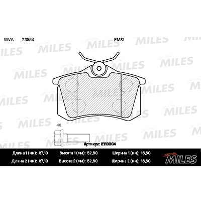 Тормозные колодки MILES полностью согласованы с требованиями заводов-изготовителей автомобилей и соответствуют оригинальным элементам тормозной системы, устанавливаемым при серийном производстве. Идеально подходят для комфортной езды в смешанных дорожных и сложных климатических условиях: на автомагистралях, в городском цикле, на горных дорогах и в холмистой местности.