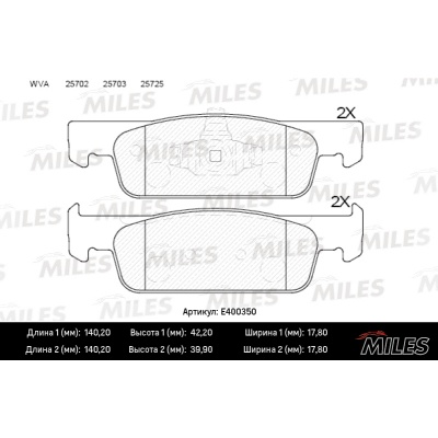 Тормозные колодки MILES полностью согласованы с требованиями заводов-изготовителей автомобилей и соответствуют оригинальным элементам тормозной системы, устанавливаемым при серийном производстве. Идеально подходят для комфортной езды в смешанных дорожных и сложных климатических условиях: на автомагистралях, в городском цикле, на горных дорогах и в холмистой местности.