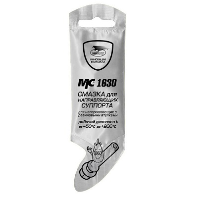 Смазка МС 1630 отлично подходит для смазывания направляющих суппорта, в том числе с резиновыми втулками. Температурные и вязкостные характеристики позволяют смазке работать в экстремальных условиях – от -50⁰С до +200⁰С. МС 1630 защищает от залипания, закоксовывания и присыхания направляющих, обеспечивая равномерный износ колодок и безопасное торможение.