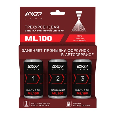 Трехуровневый очиститель топливной системы ML100 разработан на основе легендарного препарата для промывки систем впрыска ML101 EURO. Запатентованные компоненты LAVR ISP/DET™ делают добавку в топливо ML100 такой же эффективной, как процедура промывки инжекторов в автосервисе. Этим препаратом вы можете самостоятельно очистить систему впрыска качественно и безопасно. Препарат применяется при температуре окружающей среды выше -5°C.