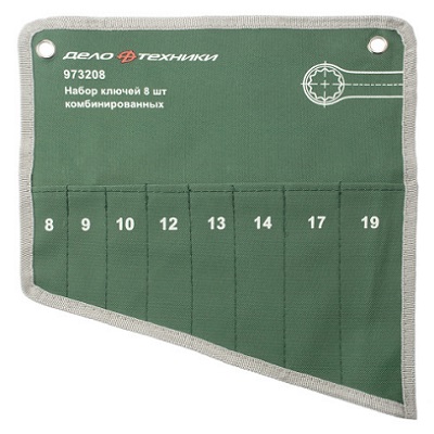 Сумка оснащена 8 отделениями. Она обеспечивает аккуратное хранение комбинированных ключей из набора 511081. Сумка изготовлена из прочного и износоустойчивого материала. Наличие отверстий позволяет подвешивать изделие в любом месте.