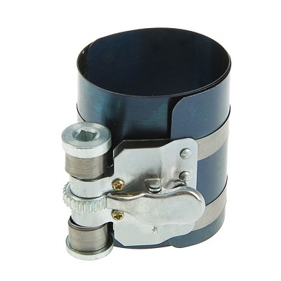 Оправка поршневых колец представляет собой удобный инструмент для установки поршня с кольцами в цилиндр. Оборудование сжимает поршень до необходимого размера, после чего деталь легко входит в цилиндр.